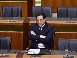 Hassan Diab (Arabic: حسان دياب Ḥassān Dyāb; born on June 1, 1959) is a Lebanese politician, engineer and academic who has been serving as the Prime Minister of Lebanon since 21 January 2020. He submitted his resignation on 10 August 2020 in wake of the 2020 Beirut explosion and has since served as Caretaker Prime Minister until a successor forms a new government. He was appointed by Lebanese President Michel Aoun on 19 December 2019 to succeed Saad Hariri, amidst the 2019–20 Lebanese protests that had caused Hariri's resignation.[1][2] Prior to his premiership, he served as the Minister of Education from June 2011 to February 2014 under President Michel Suleiman.
