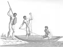 In March 1789, sixteen convicts marched to Botany Bay with the intention of plundering the natives of their fishing-tackle and spears. They had armed themselves with whatever tools they could find such as hatchets, shovels, and clubs. As they arrived near the bay a body of natives ambushed them, and in the skirmish most of the convicts fled.