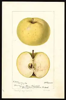 Hawley is a large yellow apple cultivar that is used for eating fresh.[1] Although the fruit are delicious, the tree is not very productive, and the fruit are often blemished or rot at the core.[1] It is therefore good as a home orchard tree, but not commercially profitable.[1] The Hawthornden apple has also been incorrectly known as Hawley.[2]