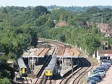 The station lies on a quadruple-track[lower-alpha 1] passing loop (the line either side of the station is double-track), which allows fast services to overtake stopping services. As such, it has a total of four platforms, one per track, numbered 1 to 4.[9]