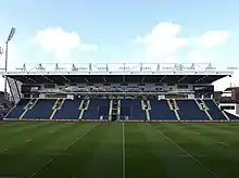 The Global East Stand[6] was completed in 2006 and replaced the Eastern Terrace. The stand has two tiers; the bottom contained terracing whilst the top contains seating, hospitality boxes, bars and a restaurant. It was originally known as the Carnegie Stand but was renamed Extentia Stand in late 2018.