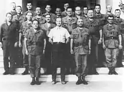 Kennedy was already imbued with the philosophy of counter-insurgency when he took office as president in January 1961. He quickly expanded the Army's special forces, but army leadership was reluctant to endorse Kennedy's vision of combined military, economic, and social action to defeat the Viet Cong insurgency. General George Decker reportedly told Kennedy that "any good soldier can handle guerrillas" and the Army placed a priority on strengthening the ARVN rather than the police, militia, and para-military forces.[11] Pacification or hearts and minds programs were only a minor factor contributing to the steady increase of U.S. advisers and other military personnel in Vietnam. The U.S. military command was optimistic that the assistance given to the South Vietnamese army was bearing fruit. The first commander of the Military Assistance Command, Vietnam (MACV) Paul D. Harkins, a proponent of conventional warfare, predicted that "the military phase of the war can be virtually won in 1963."[12]