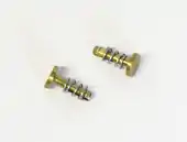 For larger heat sinks and higher preloads, push pins with compression springs are very effective.[19] The push pins, typically made of brass or plastic, have a flexible barb at the end that engages with a hole in the PCB; once installed, the barb retains the pin. The compression spring holds the assembly together and maintains contact between the heat sink and component. Care is needed in selection of push pin size. Too great an insertion force can result in the die cracking and consequent component failure.