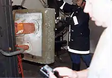 By transferring matter, energy—including thermal energy—is moved by the physical transfer of a hot or cold object from one place to another.[7] This can be as simple as placing hot water in a bottle and heating a bed, or the movement of an iceberg in changing ocean currents. A practical example is thermal hydraulics. This can be described by the formula: