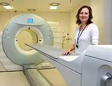 ![]() Heather Williams at work with a PET scanner | |