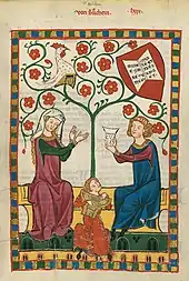 The University Library is the main library of the university, and constitutes together with the decentralized libraries of the faculties and institutes, the integral university library system comprising approximately 6.7 million printed books. It is Germany's most frequently used library, and it is currently placed 1st in a ranking of Germany's best libraries.[49] The University Library's stocks exceeded one million in 1934. Today, it holds about 3.2 million books, about 500,000 other media such as microfilms and video tapes, as well as 10,732 scientific periodicals. Moreover, it holds 6,600 manuscripts, most notably the Codex Manesse, 1,800 incunabula, 110,500 autographs, and a collection of old maps, paintings, and photographs. The further 83 decentralized libraries of the faculties and institutes hold another 3.5 million printed books. In 2005, 34,500 active users of the University Library accessed 1.4 million books a year. The conventional book supply is complemented by numerous electronic services. Around 3,000 commercial scientific journals can be accessed via e-journal.[50] The University Library of today traces its roots back to the purchase of a chest of documents by the first Rector Marsilius von Inghen in 1388, which was stored in the Heiliggeistkirche, then the University Cathedral. Since 1978, the science branch of the University Library serves the institutes of natural sciences and medicine on the New Campus.[50] In 2016, extensive refurbishments were finalized with the University Library now housing additional study spaces.