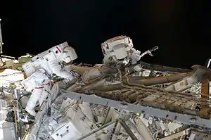 - NASA RSS (2008). "Astronauts Resume Spacewalk After Tools Lost". NASA. Retrieved November 18, 2008.