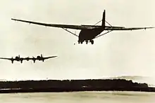 A batch of ten were produced and five were built from existing H-6s. The machines were joined by a center wing formed by two sections 6.15 m (20 ft) in length. The powerplants were five Junkers Jumo 211F engines producing 1,000 kW (1,340 hp) each. The total fuel capacity was 8,570 L (2,260 US gal). This was increased by adding four 600 L (160 US gal) drop tanks.[36] The He111Z could tow a Gotha Go 242 or Messerschmitt Me 321 Gigant gliders for up to 10 hours at cruising speed. It could also remain airborne if the three central powerplants failed. The He 111 Z-2 and Z-3 were also planned as heavy bombers carrying 1,800 kg (3,970 lb) of bombs and having a range of 4,000 km (2,500 mi). The ETC installations allowed for a further four 600 L (160 US gal) drop tanks to be installed.