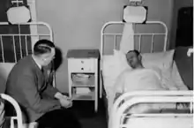 ![]() Hitler visiting Heinrich Borgmann in hospital after the failed 20 July bomb, 1944 | |