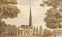 His father Diedrich Jacob was a merchant and city councillor in Demmin, Swedish Pommerania, who sent him out learning the trade in Stettin.[1] In 1746 he set up a supplies store in sugar, coffee and tobacco in Dresden. On 4 March 1747, at the age of 23, he married then 17-year-old Caroline Tugendreich Friedeborn. In 1755, Schimmelmann was responsible for tariff collection in Kursachsen. By the end of 1756 he delivered grain and flour to the Prussian army and was appointed as Geheimrat. In December 1756 or 1757 he bought pillaged Meissen porcelain from the Prussian king, which were shipped in 110 cases to Hamburg, and auctioned on 11 July 1758.[2] (He secretly returned a part to the Saxon king August III.[3]) In April Frederick the Great ordered him to contact Veitel Heine Ephraim and Daniel Itzig and deliver silver to the two mint masters who were leasing all the Prussian mints.[4] Already in July 1758 Schimmelmann leased the mint in Schwerin (Mecklenburg) from Frederick II, Duke of Mecklenburg-Schwerin and started to compete with Ephraim & Itzig. Schimmelmann produced debased coins, but with a higher silver content than the debased Prussian coins.[5] Schimmelmann employed more than a hundred people at the end of 1759; one year later already almost 300 people.[6]