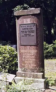 He was buried in Berlin-Charlottenburg. His tombstone is a reused lid of an Egyptian sarcophagus of the Old Kingdom.