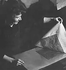 Phillips was born on March 3, 1913 in Fresno, California.[2] From 1932–36, she studied at the California School of Fine Arts in San Francisco with Ralph Stackpole and Gottardo Piazzoni.[3] In 1936, Phillips won the school's Phelan Travelling Fellowship, a competitive scholarship with which she funded a year of study in Paris.[4] From 1936, Phillips associated with Atelier 17, an experimental and collaborative intaglio printmaking workshop operating in the heart of Montparnasse. During World War II, Phillips returned to the United States and began working within the emerging literary and artistic circles of the New York School.[5]