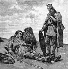 During the holmgang with Álfr, Helgi received a mortal wound due to the troll woman's curse and Álfr won. Helgi then sent his companion Sigarr to king Eylimi in order to fetch Sváfa so that they could meet before he died.