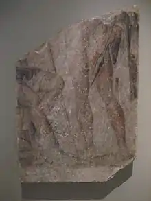 In the ancient Greek city of Demetrias in Thessaly, funerary stelai showed an assortment of mythological scenes, battle scenes, and more, all using the art styles of the Hellenistic period.[1] Stelai in Ancient Greece were used almost in the same manner as modern tombstones, commemorating the dead. They were made of stone or marble, mainly. They often either showed scenes from the deceased's life, or a mythological scene. The use of stelai in Ancient Greece have been observed dating back to the bronze age.
