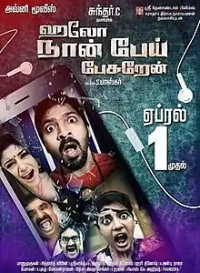 Hello Naan Pei Pesuren (transl. Hello, this is ghost speaking) is a 2016 Indian Tamil language comedy horror film written and directed by S. Baskar and produced by Sundar C., under the banner Avni Cine Makers.[1] Music was composed by Siddharth Vipin, cinematography was handled by Banu Murugan and editing by N. B. Srikanth. Vaibhav plays the male lead, Oviya and Aishwarya Rajesh are the two female leads, and VTV Ganesh and Karunakaran play supporting roles. In the film, the hero interacts with a ghost when he accidentally finds a 'horror-filled' mobile phone.[2] The film released on 1 April 2016.