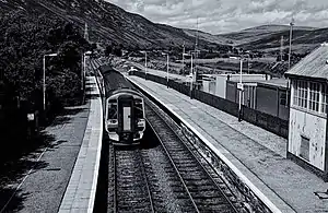 The station is 101 miles 40 chains (163.3 km) from Inverness, and has a passing loop 23 chains (460 m) long, flanked by two platforms. Platform 1 on the up (southbound) line can accommodate trains having six coaches, whereas platform 2 on the down (northbound) line can hold seven.[9]