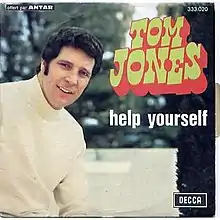 "Help Yourself" is a song recorded by Welsh singer Tom Jones in 1968. The song is one of Jones' best known songs and reached number five in the UK Singles Chart in its original run. It topped the charts in both Ireland and Germany, and spent three weeks at the top spot in Australia.[1] The American single reached Billboard peaks of number 35 pop[2] and number three easy listening, and is still widely played on adult-standards radio.