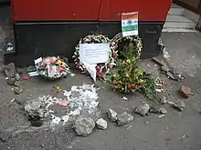 Indian Express quotes statements by Constable Arun Jadhav, who was with the officers Hemant Karkare, Vijay Salaskar and Ashok Kamte when they died.[22] The three officers and four constables had received information that Sadanand Date had been injured in the gunfire at the Cama and Albless Hospital for women and children. Located at Chhatrapati Shivaji Terminus (CST), a ten-minute drive from the hospital,[22] they took a Toyota Qualis and proceeded in that direction. Salaskar was driving, Kamte in the passenger seat, Karkare in the second row, and the four constables, including Jadhav, were in the back row of seating. According to Jadhav, five minutes later, two terrorists stepped out from behind a tree and opened fire with AK-47 automatic rifles. The six policemen, other than Jadhav, were all killed quickly in the gunfire. Kamte was the sole officer who managed to retaliate, wounding terrorist Ajmal in the arm.[23] The wounded Jadhav had no opportunity to render assistance. The two terrorists approached the vehicle, dumped the bodies of the three officers on the road and, leaving the constables for dead, proceeded to Metro Cinema. Upon arrival, they aimed three bursts of automatic fire at the police and press vehicles drawn up at that location, then drove off towards the government offices (Vidhan Bhawan) in South Mumbai. Here again they fired several times. While attempting to leave the area, one of the tires of the vehicle burst, so the terrorists departed to obtain another. At this point, Jadhav was able to contact headquarters. The bodies of the dead were recovered and taken to St George Hospital. However the statement that Kasab fired "inside the car" was rejected by the court.[24] The crucial evidence in Karkare's death - the source of bullet fired into his body was absent. The bullets did not match with few of the terrorist's recovered guns which made it impossible to decide who amongst the terrorists killed Hemant Karkare.[25][26][27] In an investigation, Headline Today, an Indian news agency, found that a substandard bulletproof jacket had been issued to Mr. Karkare. Though, according to the post mortem report, the quality of the vest was not a factor in his death as bullets did not pierce the vest.[28] Concerns in the media about the quality of the vest continue[29] because the vest itself was, according to Indian authorities, misplaced in the hospital.[30] In 2018, the Bombay High Court discarded a pending petition that had claimed that Karkare was not gunned down by terrorists Ajmal Kasab and Abu Ismail.[31]