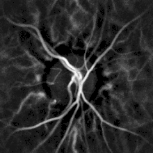Noninvasive hemodynamic monitoring of eye fundus vessels can be performed by Laser Doppler holography, with near infrared light. The eye offers a unique opportunity for the non-invasive exploration of cardiovascular diseases. Laser Doppler imaging by digital holography can measure blood flow in the retina and choroid, whose Doppler responses exhibit a pulse-shaped profile with time[27][28] This technique enables non invasive functional microangiography by high-contrast measurement of Doppler responses from endoluminal blood flow profiles in vessels in the posterior segment of the eye. Differences in blood pressure drive the flow of blood throughout the circulation. The rate of mean blood flow depends on both blood pressure and the hemodynamic resistance to flow presented by the blood vessels.