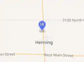 The town of Henning is located in eastern Illinois in central Vermilion County. U.S. Route 136 passes through Henning which sits west of Illinois Route 1. The C&EI Railroad (Chicago and Eastern Illinois) and the IC Railroad (Illinois Central) both had spurs that crossed in Henning. The IC is no longer active; the C&EI spur ends in Henning for the purpose of serving the grain elevator still there. The Indiana / Illinois state line is just nine miles east of Henning. A town of note in the area includes Danville just 11 miles south and a little east of Henning.