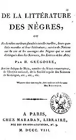 - De la littérature des nègres (An Enquiry Concerning the Intellectual and Moral Faculties, and Literature of Negroes) original French and English translations are contained in this 2016 hardcover dual language edition published by Edition Delince.