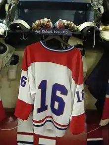 He always wore the number 16, which was retired on December 10, 1975 by the Canadiens in his honour; he insisted that the proceeds from his jersey retirement night be donated towards the construction of a gymnasium for an orphanage.[5] He was elected to the Hockey Hall of Fame in 1979.[3] In 1998, he was ranked number 29 on The Hockey News' list of the 100 Greatest Hockey Players.[13] He would later serve as an ambassador for the Canadiens' organization.[12] In 2015, it was announced that Richard had been diagnosed with Alzheimer's disease.[14] He died on March 6, 2020 at the age of 84 due to complications of the disease, in Laval, Quebec.[15]