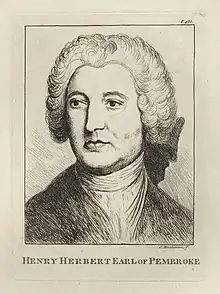 Lt.-Gen. Henry Herbert, 9th Earl of Pembroke, 6th Earl of Montgomery PC FRS (29 January 1693[1] – 9 January 1749[2]) was an English peer and courtier. He was the heir and eldest son of Thomas Herbert, 8th Earl of Pembroke and his first wife Margaret Sawyer. He was styled Lord Herbert from birth until he inherited his father's earldoms of Pembroke and Montgomery in 1733.