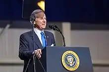 McMaster filed to run for lieutenant governor of South Carolina on March 27, 2014.[21] He received 44% of the vote in a four-way Republican Party primary, forcing a runoff between him and Mike Campbell, son of former Governor Carroll A. Campbell, Jr.[22] McMaster defeated Campbell with 63.6% of the vote[23] and faced Democratic State Representative Bakari Sellers in the general election. Upon his inauguration, he succeeded Democrat Yancey McGill.[lower-alpha 1] During the campaign, Sellers challenged McMaster to renounce his 30-year membership in Columbia's Forest Lake Country Club, a private country club alleged to exclude black members; in response, McMaster's campaign manager said that the club "[had] no policies of racial discrimination" and that McMaster "would not be a member if it did."[13][24][25] On November 4, 2014, McMaster was elected lieutenant governor with 58.8% of the vote.[26]