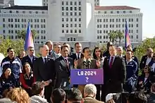 Wesson chaired the City Council's Ad Hoc Committee on the 2024 Summer Olympics. On January 25, 2017 he voted in favor of final approval of L.A.'s Host City Bid.[18] Following the news that L.A. would bid on the 2028 Olympic and Paralympic Games, Wesson and the City Council voted unanimously in favor of the new proposal.[19] On September 13, 2017, Los Angeles was officially named as the host of the 2028 Olympic and Paralympic Games.[20]