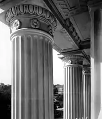 Aspects of other buildings built in Federal Triangle in the 1930s are present in the building, including courtyards (natural light and ventilation are provided to inner offices by six interior courtyards[4] and a Neoclassical (Greek Revival) architectural style (a Doric colonnade on three sides).[4]