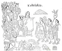 Among these women was La Malinche, his future mistress and mother of his son Martín.[1] Malinche knew both the Nahuatl language and Chontal Maya, thus enabling Cortés to communicate with the Aztecs through Aguilar.[15]:82, 86–87 At San Juan de Ulúa on Easter Sunday 1519, Cortés met with Moctezuma II's Aztec Empire governors Tendile and Pitalpitoque.[15]:89