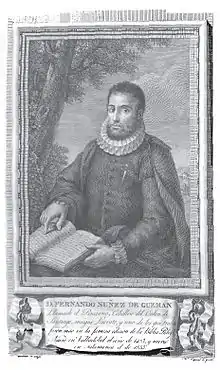 Hernán Núñez de Toledo y Guzmán (Valladolid, 1475 - Salamanca, 1553) was a Spanish humanist, classicist, philologist, and paremiographer. He was called el Comendador Griego, el Pinciano (from Pintia, the Latin name of Valladolid) or Fredenandus Nunius Pincianus. He earned his degree in 1490 from the Spanish College of San Clemente in Bologna. He returned to Spain in 1498 and served as a preceptor to the Mendoza family, in Granada. In this city, he studied classical languages as well as Hebrew and Arabic. Cardinal Gonzalo Ximénez de Cisneros hired him as censor of the cardinal's press at Alcalá de Henares. There, Nuñez worked on the Complutensian Polyglot Bible, specifically on the Septuagint. Nuñez was named professor of rhetoric at the Universidad Complutense, which had recently been founded. He then taught Greek from 1519. During the Castilian War of the Communities, Nuñez sided with the comuneros but avoided execution. He then taught at the University of Salamanca, occupying the post once filled by Antonio de Nebrija. At the age of 50, he retired from teaching to dedicate himself fully to research, although he seems to have still given classes on Hebrew at the University of Salamanca.
