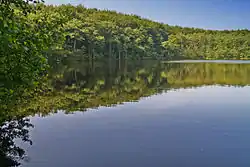 Herthasee is a lake on the island Rügen, Mecklenburg-Vorpommern, Germany. At a length of 170 m and a width of 140 m, it covers a surface area of 0.202 km². It has a maximum depth of 11 m. It is located in the center of the Jasmund National Park and its famous chalk cliffs.
