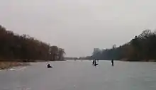 Skating on Grenadier Pond was banned by the Toronto Parks Department starting in 2001,[66] but it remained a favourite skating location for Torontonians in the west end of the city for skating and shinny.[67] In the past, the "old" City of Toronto flooded the surface from holes drilled in the ice and cleared areas for rinks.[68] In 2015, Toronto City Council voted to fund a $25,000 ice monitoring program and legalize skating again.[69] A record cold winter in 2015 had seen many people skating on the ice despite bylaw officers attempting to write $125 tickets.[70]