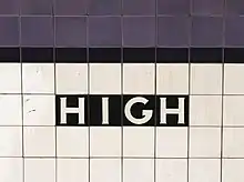 - Cox, Jeremiah (May 16, 2008). "Looking at the purple trimline with a black boarder and black High text beneath it along the platform walls at High St". subwaynut.com. Retrieved December 16, 2016.