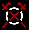 The Canadian and Australian uniform signs shown below are the headquarters signs. Canadian attached troops indicated their (service) corps with the addition of letters (for example R C E for the Royal Canadian Engineers or a maroon stripe for the Royal Canadian Medical Service).[64] Australian attached troops indicated their (service) corps by replacing the black and white triangles with their corps colour (I Corps), or central triangle (II and III Corps) and replacing the black triangle with the green or red of the field corps, for example purple for the Royal Australian Engineers or brown for the Australian Army Medical Corps.[65]