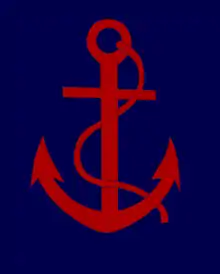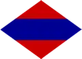 The appropriate arm of service strip would be worn below the sign on a uniform (see above), with the exception of some (service) corps in I Corps, which altered the colours of the diamond as appropriate. For example, engineers (two diagonal blue stripes on the diamond),[55] signals (a blue diamond),[56] artillery (diamond halved vertically, blue and red)[57] and service corps (diamond halved horizontally blue on yellow).[58]