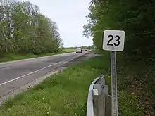 Highway location markers often have the route identifier marked on them.