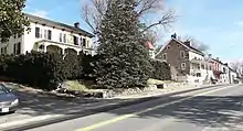 "Although there were mills and houses in the Gap in the late 1700s, the town of Hillsboro (spelled Hillsborough until its 1880 incorporation) was not formally established until December 31, 1802 by an act passed by the Virginia General Assembly. The trustees of Hillsboro named in the act were Mahlon Hough, Samuel Purcell, Jr., Thomas Leslie, Josiah White, Jr., Edward Cunard, Mahlon Roach, and Thomas D. Stevens. By June 20, 1811, when Henry Griffin bought lot No. 12 on the town plat at auction for $88.50 paid to the trustees, he was required to build "a House thereon Twelve feet Square or equal thereto with a Stone or Brick Chimney to the same and a Shingle Roof on it within Four years of the Day of the Sale of the said lott." Due to its favorable location on the Vestal's Gap Road, the town grew quickly and in the early 1800s was one of the leading trade centers of western Loudoun, along with Snickerville (Bluemont) and Woodgrove, which has since disappeared. Much of Hillsboro's activity was due to its mills, with as many as five operating at one time, all on Catoctin Creek or its nearby branches." [8][9]