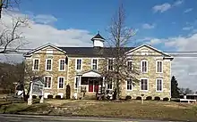 A central feature of the town is its affectionately named "Old Stone School." Originally named Locust Grove Academy, the oldest part of the building, the east wing, was built in 1874. The Academy's first principal was Mrs. J.B. White. The Old Stone School, as it is referred to now, is situated astride the eastern entrance to the town on Route 9. The stone structure was completed in 1917 with the addition of more rooms on the west side. A junior high school was established there in 1918, and operated for 17 years, until 1935. The brick auditorium was added in 1929. Classes for Grades One through Seven were taught there until the spring of 1966, when Hillsboro Elementary opened. The school was the hub of the community in the early 1900s. Community plays were frequently held there with a local orchestra that played during intermission.