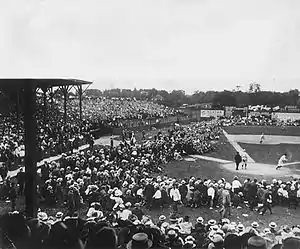 The seating capacity of 16,000 was also rather large for this time period. Capacity in the dead-ball Era was a flexible concept. In accordance with the practices of the day, overflow crowds were allowed to stand in the perimeter of the outfield. In addition, for "big" games, additional standees were allowed down the foul lines and between home plate and the backstop. Thus the effective overall capacity of the park was closer to 25,000, although even when stuffed to the gills, it fell well short of the normal capacity of the Polo Grounds.