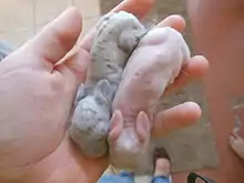 Himalayans are also known as the Chinese, Egyptian, and Black-nose.[2] They are posed stretched out, and their body is to be 3.5 head lengths.[3] They have fine bone and a skinny body, and, unlike many other breeds, were never raised primarily for meat. This breed's main purpose is for show, but in its past, it was raised for its white pelt. Also, they are the only rabbit breed that commonly has an extra set of nipples. They are the ancestors of Californians, one of the most common meat rabbits.