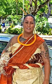 Hinaleimoana Kwai Kong Wong-Kalu,[1] also known as Kumu Hina, is a Native Hawaiian māhū – a traditional third gender person who occupies "a place in the middle" between male and female,[2][3][4][5] as well as a modern transgender woman.[6] She is known for her work as a kumu hula ("hula teacher"), as a filmmaker, and as a community leader in the field of Kanaka Maoli language and cultural preservation. She teaches Kanaka Maoli philosophy and traditions and promotes cross-cultural alliances throughout the Pacific Islands.[7] Described as a "powerful performer with a clear, strong voice",[8] she has been hailed as "a cultural icon".[9]