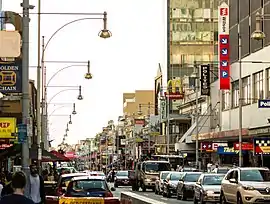For many years, the street was the centre of trade and finance for Adelaide. Furthermore, it was expected to permanently hold that position as time passed. The reason for this was largely because Adelaide was a particularly young city at the time, with the majority of settlers coming from the west with the water sourced from the River Torrens.[8] Immigrants who landed at Port Adelaide would travel to a ford near Hindmarsh, then to the place where Morphett Street ends and Hindley Street begins.[8] Immigration Square was situated westward of the parklands, with most of Adelaide's business and trade being conducted westwards. The "trade" itself was dubious and the subject of much controversy at the time, with many residents outraged at the young girls who would travel down the street drunk due to alcohol trade.[8]