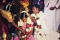 A Hindu wedding, known as Vivaha in Sanskrit,[1] or 'Shaadi ' is the traditional wedding ceremony for Hindus. The wedding ceremonies are very colourful, and celebrations may extend for several days. The bride's and groom's home—entrance, doors, wall, floor, roof—are sometimes decorated with colors, balloons, and other decorations.[2]