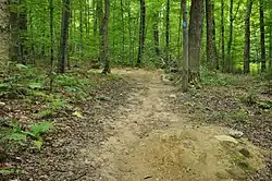 The Hinesburg Town Forest is located on its eastern border with neighboring Huntington, in the foothills of the Green Mountains which rise to the east. It consists of two parcels of land, which meet at a corner through which Hayden Hill Road passes. The road runs along the northern border of the larger southern parcel, with an unmaintained portion of roadway joining two maintained sections. Public parking lots are found at the ends of the two maintained sections of Hayden Hill Road, as well as in the main parcel's southeast corner where Economou Road provides access from Huntington.[2]