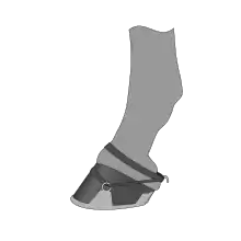 The hipposandal (Latin soleae ferreae)[1] is a device that protected the hoof of a horse. It was commonplace in the northwestern countries of the Roman Empire,[1][2][3] and was a predecessor to the horseshoe.