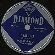 By the late 1930s, with the rise of swing, hep began to be used commonly in mainstream "square" culture, so by the 1940s hip rose in popularity among jazz musicians, to replace hep. In 1944, pianist Harry Gibson modified hepcat to hipster[2] in his short glossary "For Characters Who Don't Dig Jive Talk", published in 1944 with the album Boogie Woogie In Blue, featuring the self-titled hit "Handsome Harry the Hipster".[3] The entry for hipsters defined them as "characters who like hot jazz." In 1947, Gibson sought to clarify the switch in the record "It Ain't Hep" which musically describes the difference between the two terms.