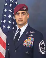 Chief Master Sergeant Ramón Colón-López is pararescueman who on June 13, 2007, became the first Hispanic, among the first six airmen, to be awarded the newly created Air Force Combat Action Medal, bestowed upon him by Air Force Chief of Staff General Teed Michael Moseley at the Air Force Memorial, in Washington, DC.[78] The medal was created to recognize Air Force members who are engaged in air or ground combat "outside the wire" in combat zones. Airmen who are under direct and hostile fire, or who personally engaged hostile forces with direct and lethal fire are eligible to receive the award. On March 11, 2004, Colón-López together with his Advance Force Operations Team and elements of the Afghan National Strike Unit, participated in an operation which required the capture of a high level target and a follow-on site exploitation with the intention of preventing the proliferation of chemical weapons. His helicopter came upon hostile enemy fire, however Colón-López continued on his mission which resulted in the capture of 10 of the enemy and the destruction of multiple rocker propelled grenades and small caliber weapons. In January 2005, after Colón-López returned to the United States, he was named Superintendent of Training and later Commandant of the Pararescue and Combat Rescue Officer School[79]