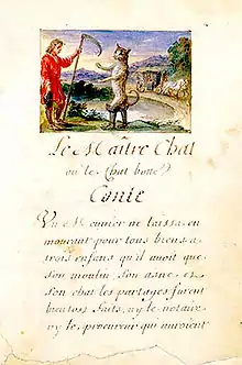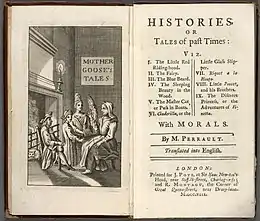 Histoires ou contes du temps passé, avec des moralités or Contes de ma mère l'Oye (Stories or Tales from Past Times, with Morals or Mother Goose Tales)[2] is a collection of literary fairy tales written by Charles Perrault, published in Paris in 1697. The work became popular because it was written at a time when fairy tales were fashionable amongst aristocrats in Parisian literary salons.[3] Perrault wrote the work when he retired from court as secretary to Jean-Baptiste Colbert, minister to Louis XIV of France. Colbert's death may have forced Perrault's retirement, at which point he turned to writing. Scholars have debated as to the origin of his tales and whether they are original literary fairy tales modified from commonly known stories, or based on stories written by earlier medieval writers such as Boccaccio.